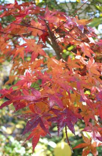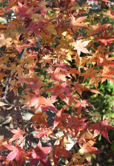 表のモミジ(ヤマモミジ系)・・・色様々に紅葉〜してくれました。