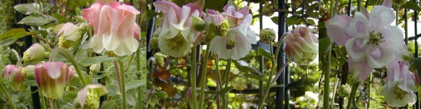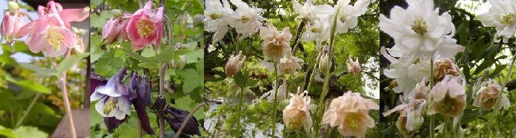 | 西洋オダマキのみんな〜 ※その4は、その3に続き ピンク系の子です。 ころっとした子で女らしく、左)蕾も可愛いでしょう。 |