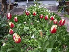 | え・24さんの チューリップと一緒の花壇。 中心のオダマキも元気そうですね。 |  |