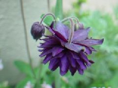 | にこりんぼさんの妹さんの オダマキも、「チョコに白」の 子でしょうね。紫系の子が、 また素敵です。 (携帯カメラからの画像) |   アニスさんちのオダマキ (ブラックバローちゃん)、 なんと個性的ですね。 |