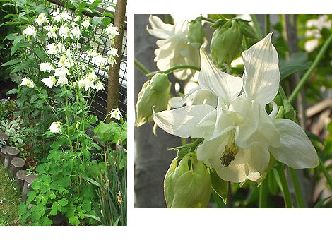 |  ろんさんの、待ち通しい蕾が付いた様子。 |  純白のオダマキが開花! 背も高く育ったようです。 |